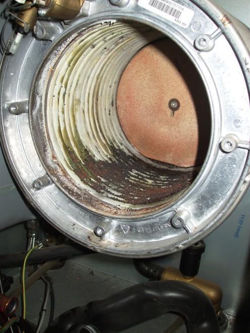 Szczególnie ważne bo to w nim przekazywane jest ciepło ze spalania gazu na instalację. Powstaje tam nalot, osad mineralny który pomniejsza sprawność kotła gazowego. Brudna komora spalania to źródło wielu awarii i kosztownych napraw.